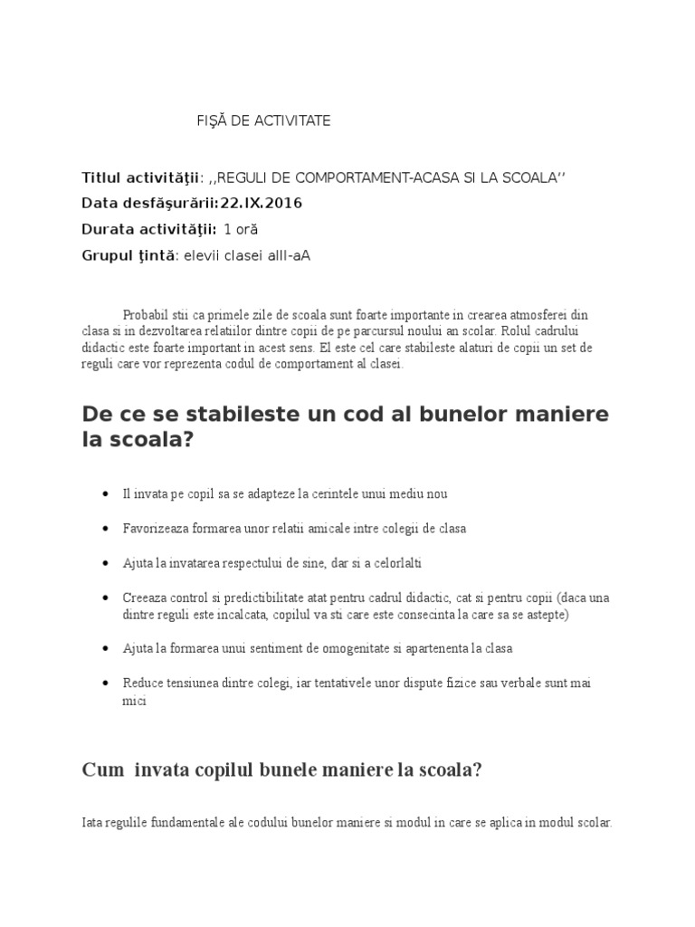 Codul Bunelor Maniere La Scoală