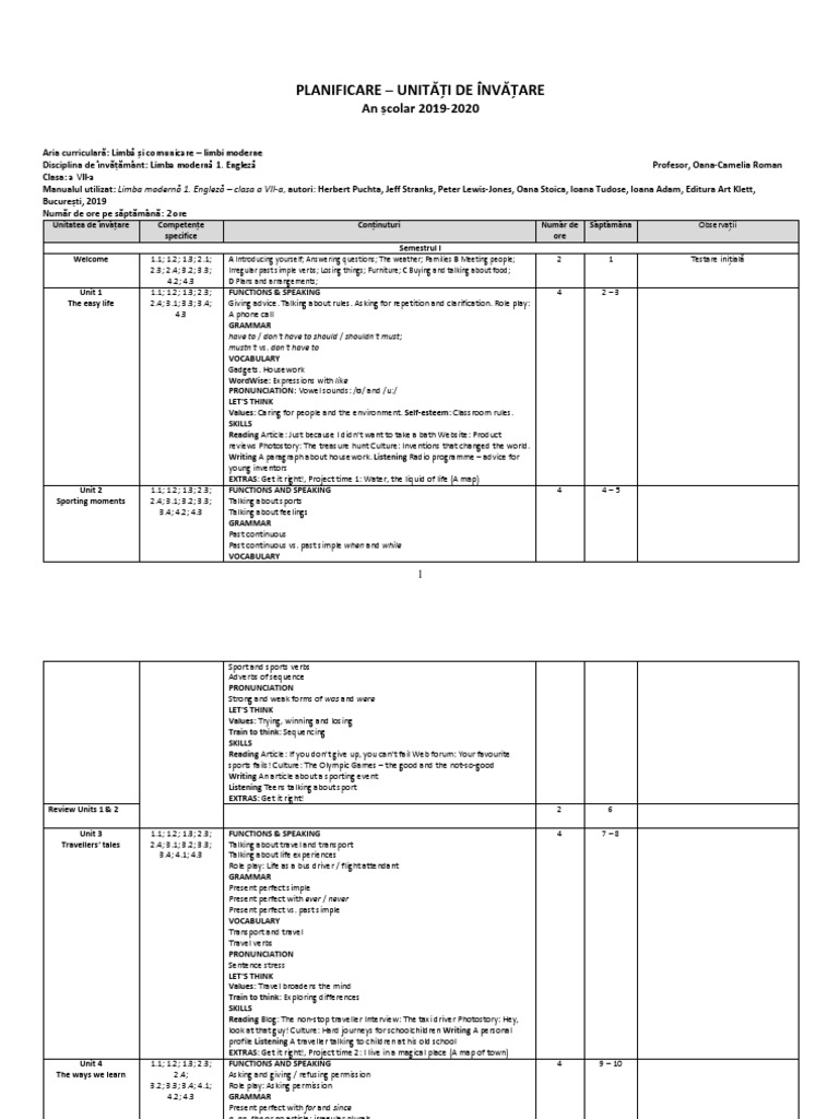 Planificare Pe Unitati Si Detalieri De Continut Vii Art Klett Grammar Communication