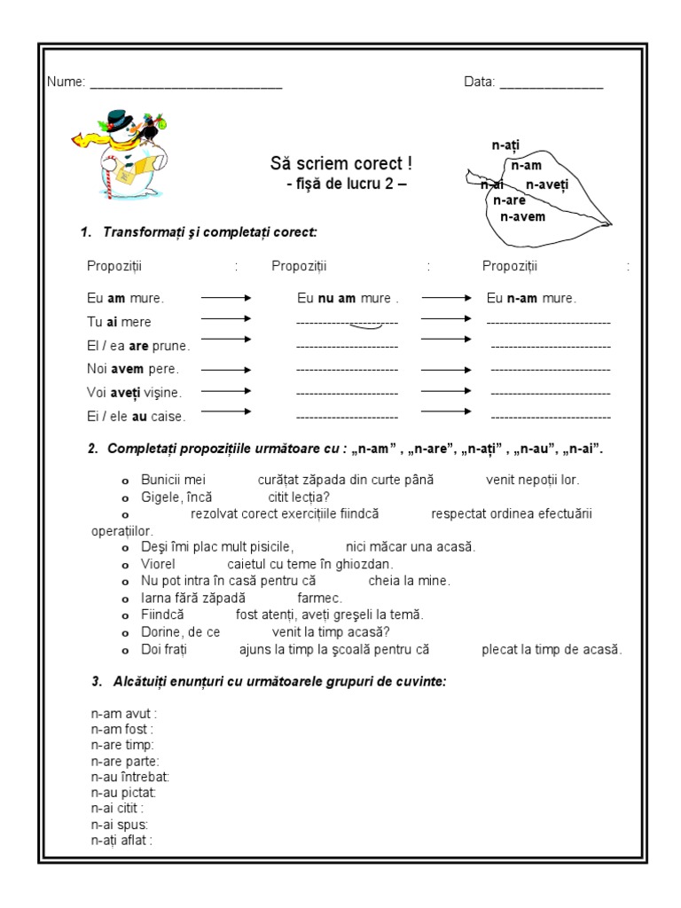 Fisa De Lucru Scrierea Corecta N Am N Ai N Ai N Avem