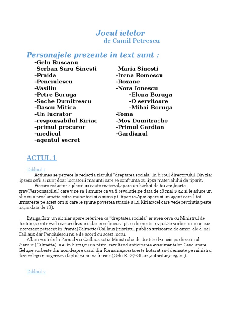 Referat Jocul Ielelor De Camil Petrescu Famouswhy Ro