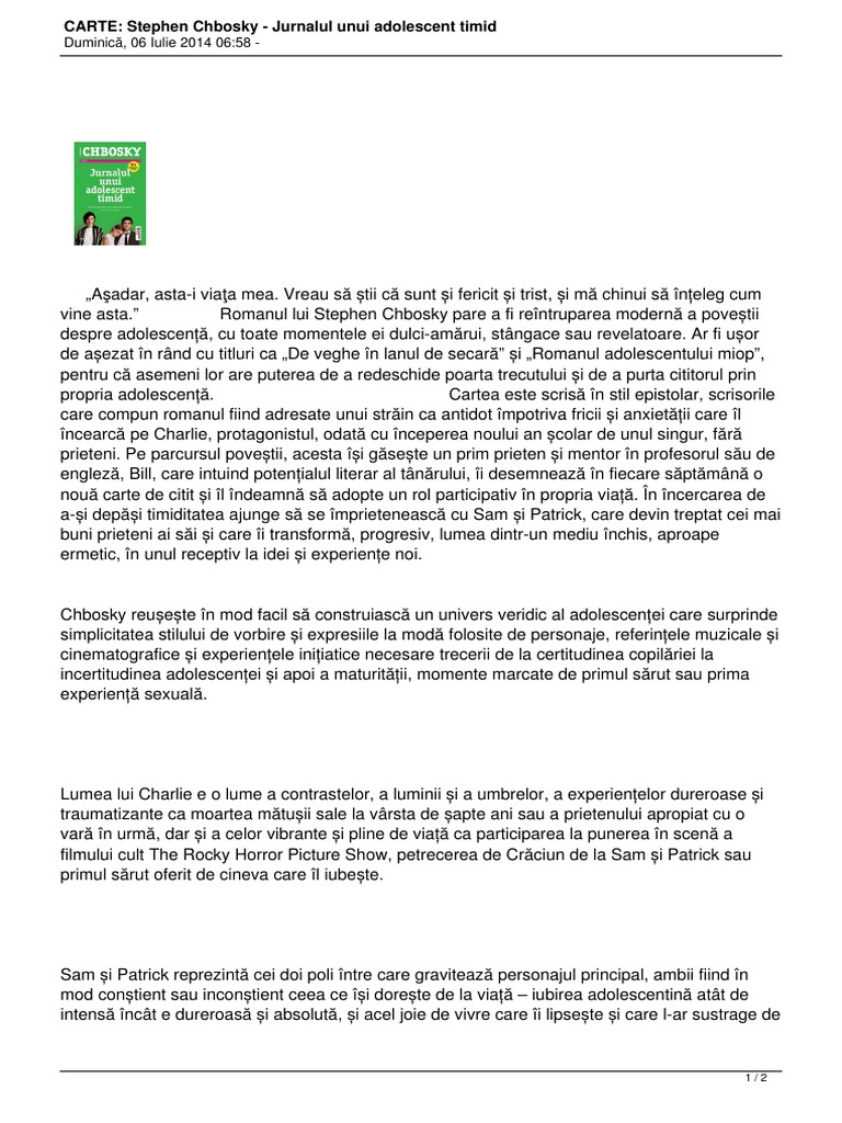 Jurnalul Unui Adolescent Timid Stephen Chbosky Pdf