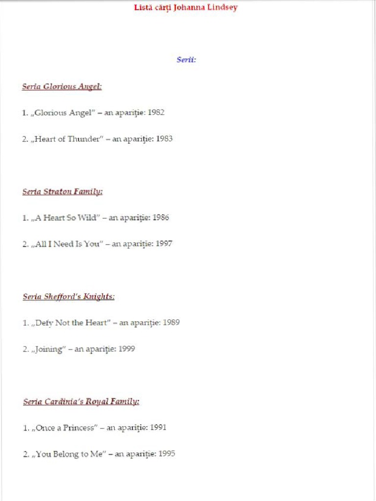 Listă Cărți Johanna Lindsey Delicatese Literare