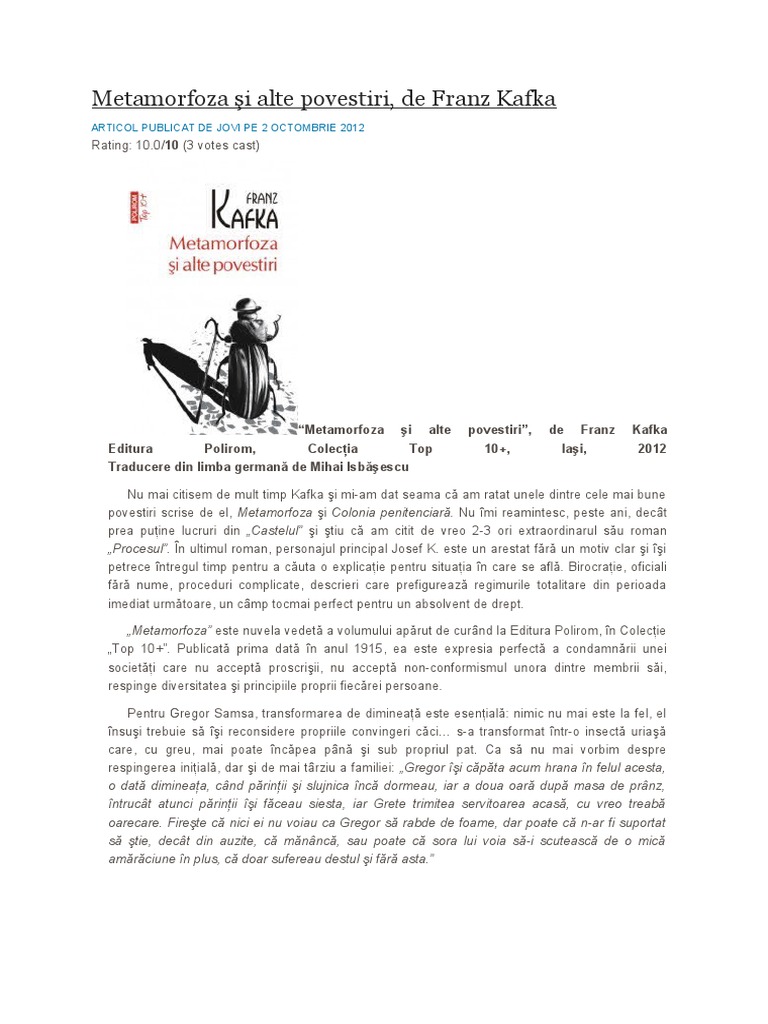 Metamorfoza Si Alte Povestiri Top 10 Franz Kafka